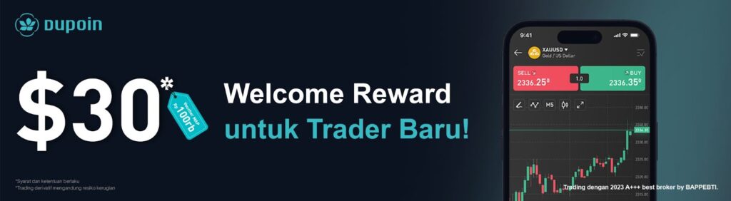 “Welcome Reward” adalah penawaran promosi yang dirancang untuk pelanggan baru yang memenuhi syarat untuk menjelajahi platform Dupoin tanpa setoran awal. Penawaran ini tersedia melalui akun khusus yang dikenal sebagai “Akun Promo“ elcome Reward. Klien dapat mengklaim hingga $100 dalam bentuk keuntungan dari hasil trading di “Akun Promo”.